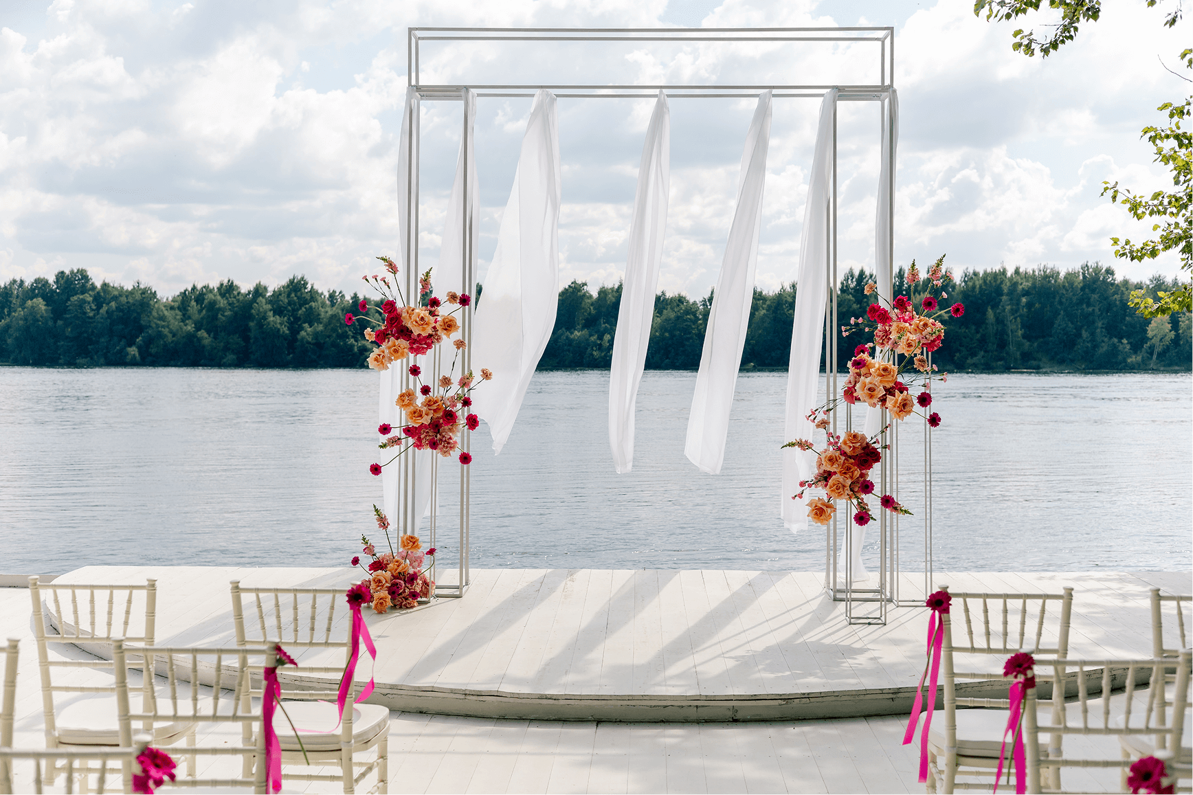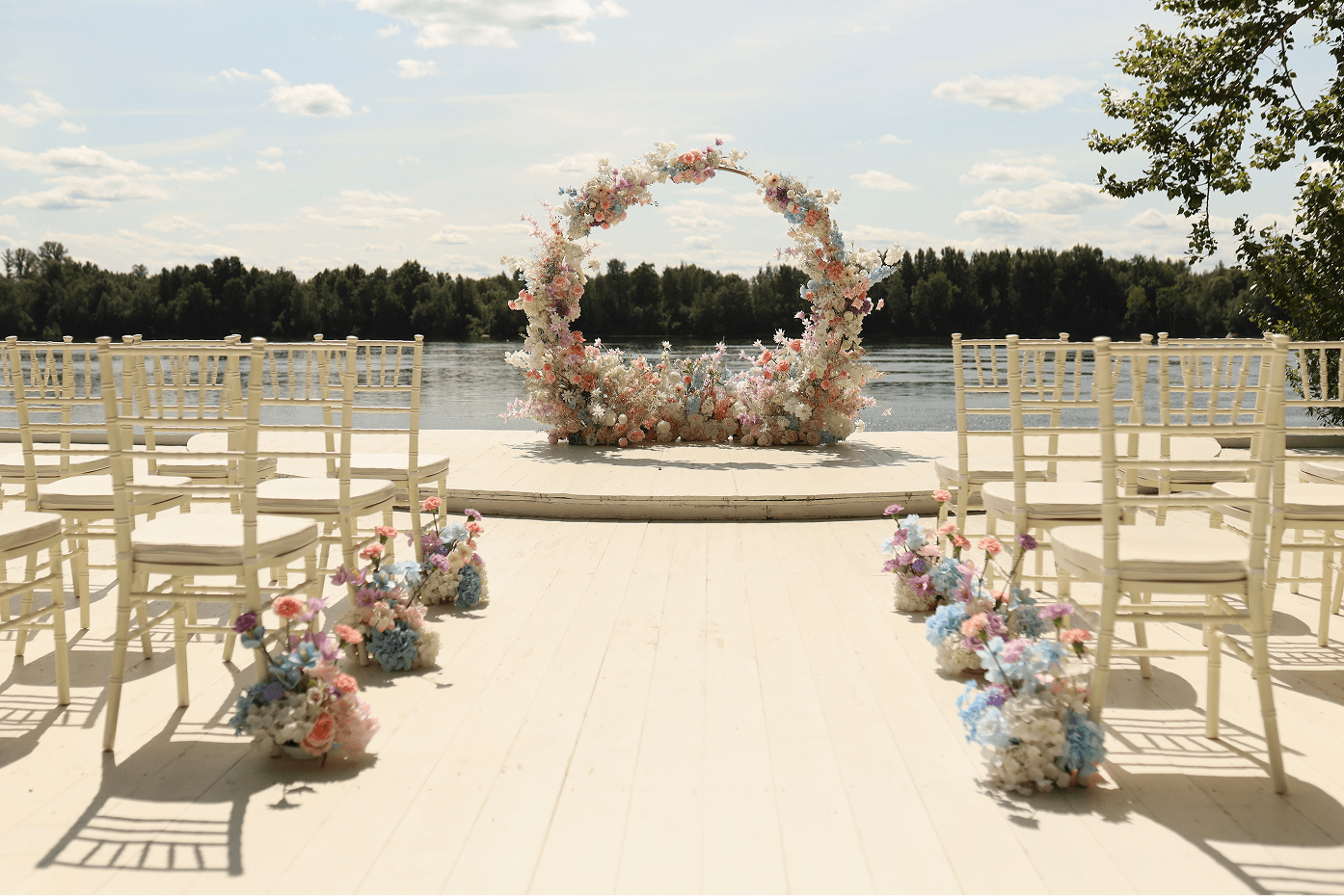 Честно говоря, это была одна из самых трогательных выездных регистраций за всю историю площадки Заберег! Невесту к арке вёл сын, что вызвало у всех присутствующих массу настоящих, неподдельных эмоций!